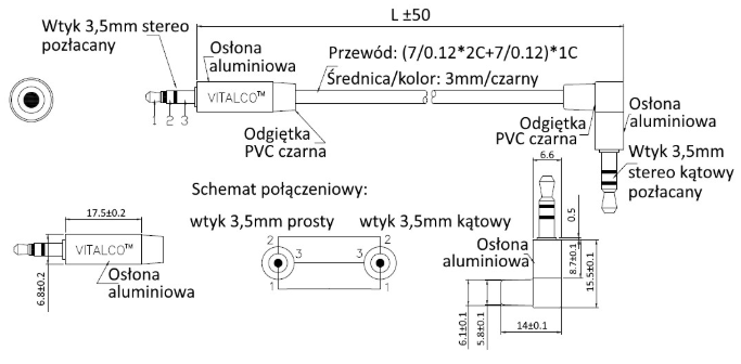 Kabel AUX Vitalco z małym, kątowym jackiem 3,5 mm jest wszechstronny i niezastąpiony w codziennym użytkowaniu. Umożliwia łatwe podłączenie urządzeń mobilnych do głośników, wzmacniaczy, systemów car audio oraz innych sprzętów audio, zapewniając stabilne połączenie i niezawodny przesył dźwięku.