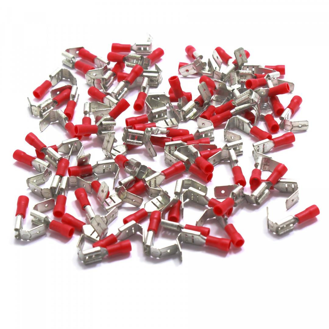 KONEKTOR 6,4 ŻEŃSKI Z ODCZEPEM CZERWONY 100 SZT