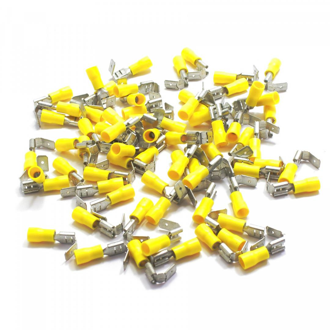 KONEKTOR 6,4 ŻEŃSKI Z ODCZEPEM ŻÓŁTY 100 SZT
