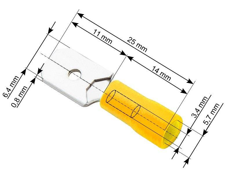 KONEKTOR IZOLOWANY MĘSKI 6,4 ŻÓŁTY 100SZT.
