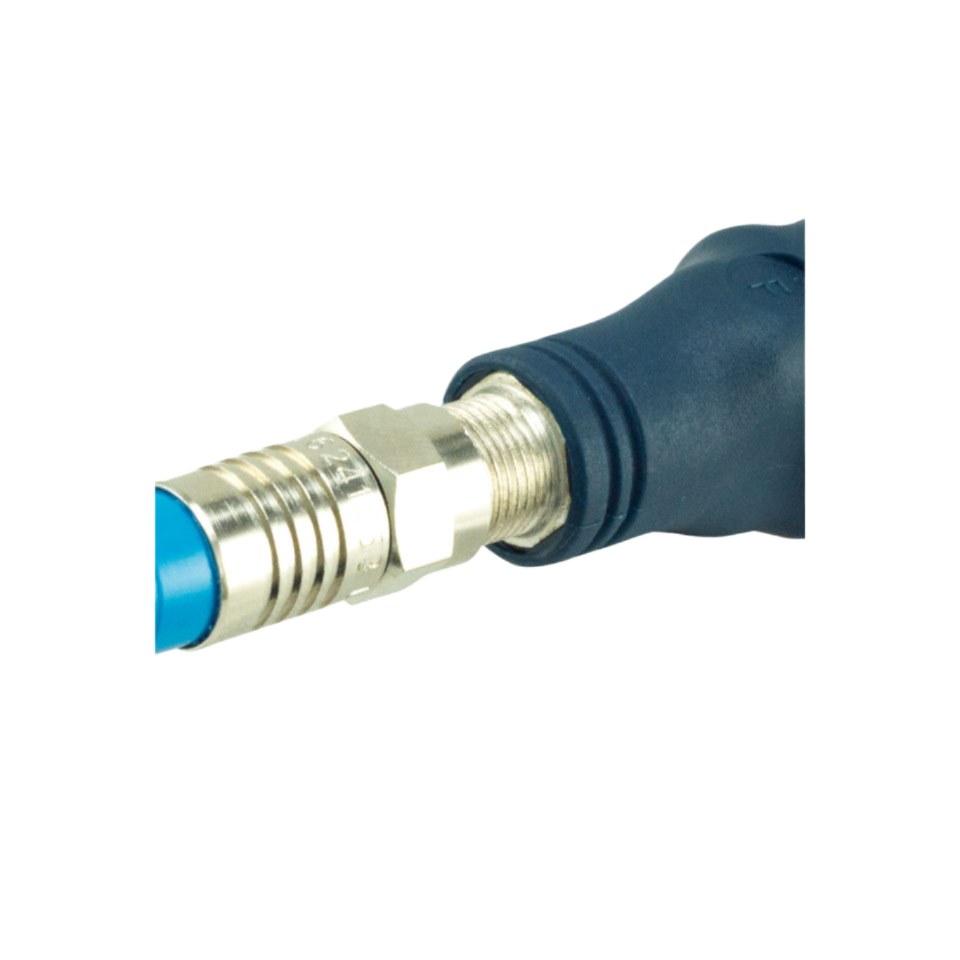 - Wyposażony w metalowe stożkowe tuleje o precyzyjnie dopasowanych średnicach do izolacji wewnętrznej kabla.