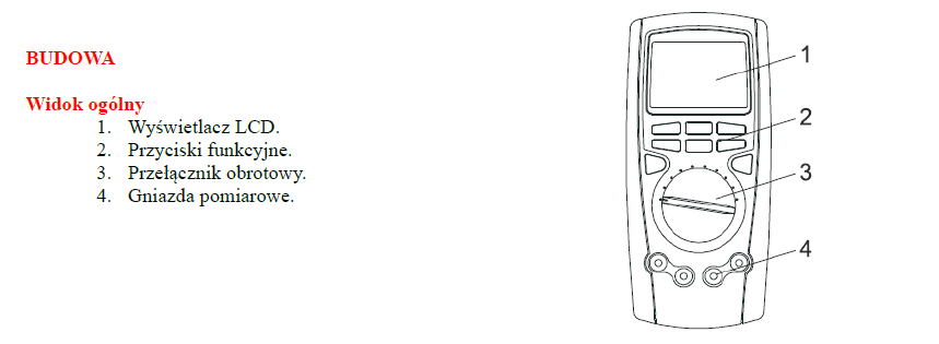 - napięcie AC (45Hz-100kHz) - 4V-1000V - napięcie DC - 400mV- 1000V - prąd AC (45Hz-10kHz) - 400µA - 10A - prąd DC - 400µA - 10A - rezystancja - 400Ω-40MΩ - pojemność - 40nF-40mF - częstotliwość - 40Hz-400MHz - temperatura - -40°C - 1000°C |