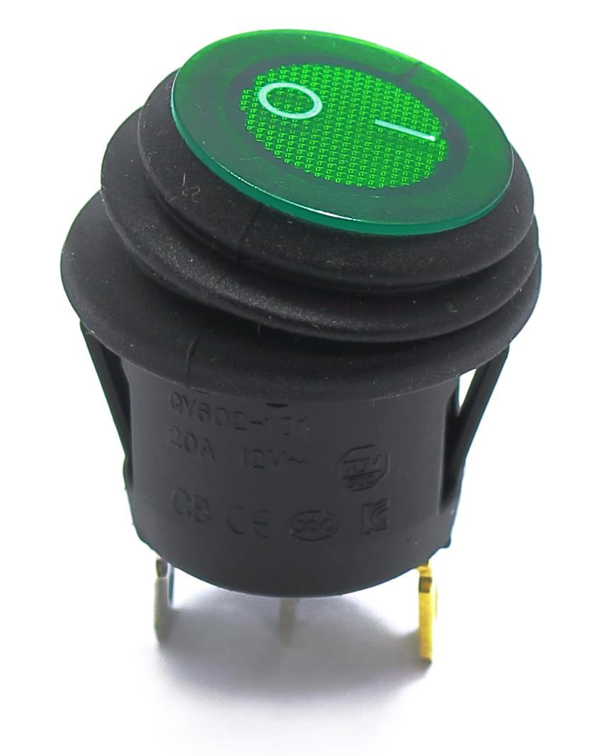 PRZEŁĄCZNIK HERMETYCZNY OKRĄGŁY ZIELONY 12V 20A