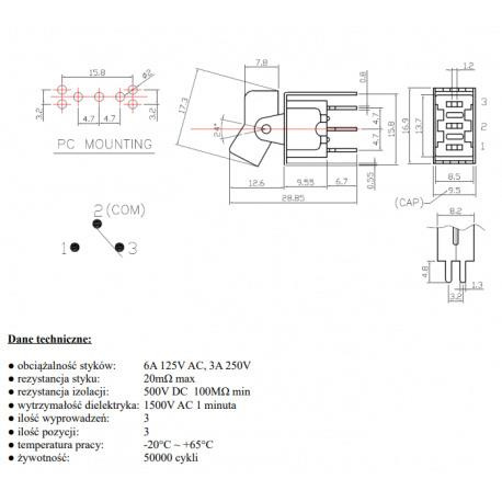 PRZEŁĄCZNIK KOŁYSKOWY ON-OFF-ON 3PIN 3POZ VS5106 VITALCO