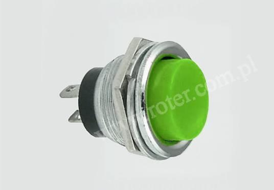 Przełącznik przyciskowy okrągły duży metal, off-(on) zielony