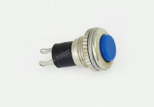 Przełącznik przyciskowy okrągły metal, off-(on) niebieski