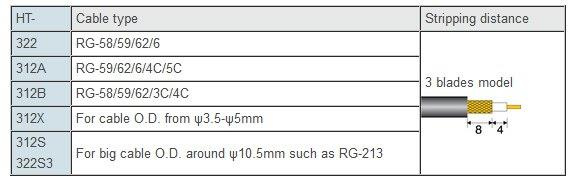 - Rozmiary ściąganej izolacji: RG59 RG6 RG62