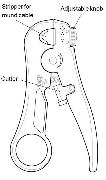 - ściągacz izolacji przewodów UTP, STP oraz wielożyłowych