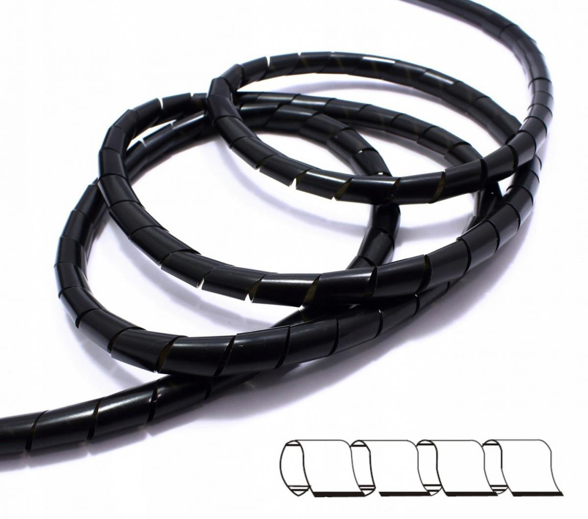 Spiralny organizer kabli i przewodów służy do utrzymania przewodów w formie wiązki oraz ich ochrony przed uszkodzeniami mechanicznymi. Wąż spiralny zapewnia wiązce przewodów odpowiednią izolację, dużą elastyczność oraz odpowiednią siłę oplotu. Dzięki zastosowaniu organizera wiązkę przewodów możemy z łatwością rozgałęzić w dowolnym miejscu a spirala ochronna może być stosowana wielokrotnie.