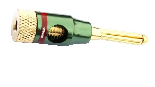 Wtyk o bardzo wysokiej jakości i precyzji wykonania zapewniający bezstratny przesył sygnału dźwiękowego. Korpus oraz złącze wtyku wykonano z brązu natomiast powierzchnia styku została pokryta złotem w celu zapewnienia optymalnego przesyłu sygnału. Zastosowanie: jako zakończenia przewodów głośnikowych w wysokiej klasy zestawach audio/kina domowego. |