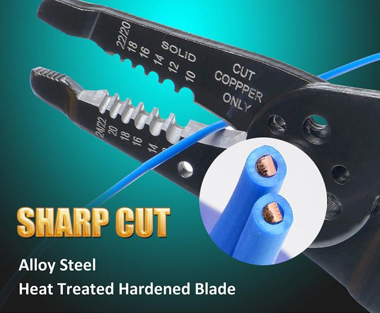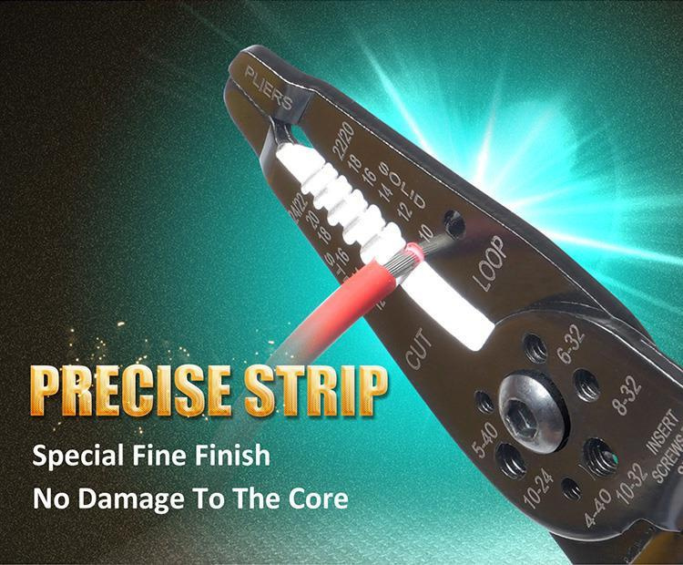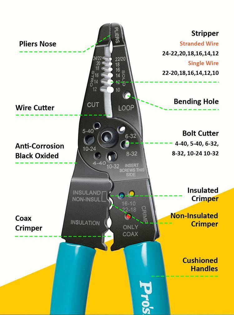 - ściągacz izolacji do przewodów: AWG 22-20, 18, 16, 14, 12, 10