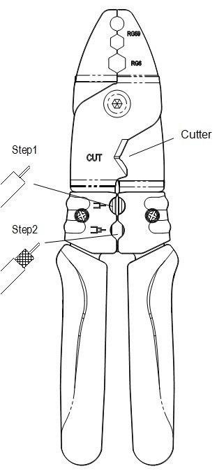- zaciskacz dla RG59/6 - ściągacz izolacji - obcinaczki drutów miedzianych i stalowych |