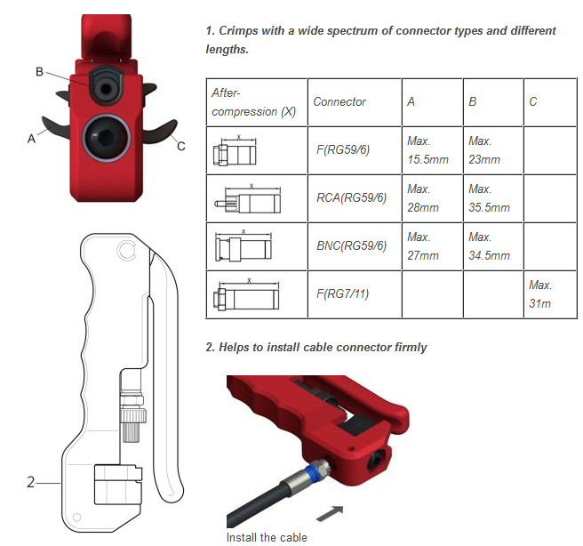 - regulowana długość kompresji - pomaga mocno zainstalować złącze kabla |