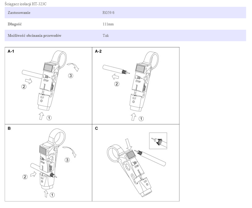 #03451 Zaciskacz HT-516B złącz kompresowanych F,BNC,RCA RG59,6 Hanlong |