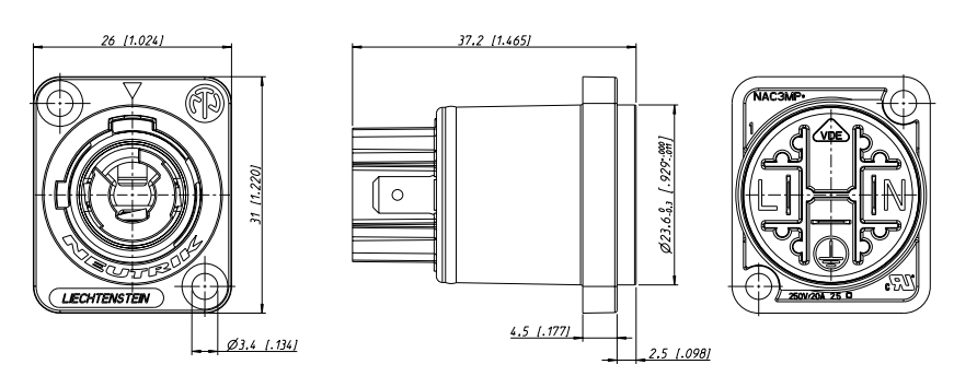 GNIAZDO POWERCON SIECIOWE NAC3MPA-1 NEUTRIK TABLICOWE MONTAŻOWE
