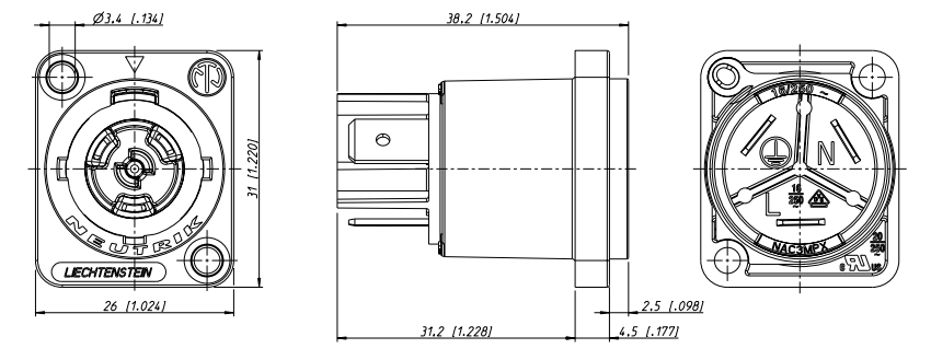 GNIAZDO TABLICOWE SIECIOWE POWERCON TRUE1 NAC3MPX-TOP NEUTRIK