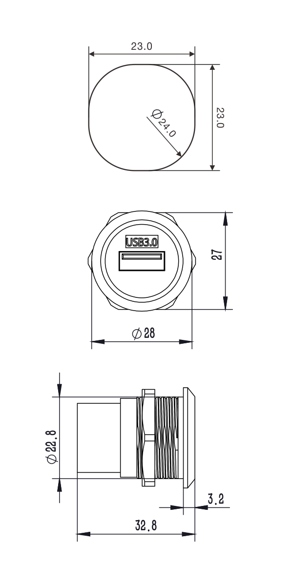 GNIAZDO USB 3.0 MONTAŻOWE ROXTONE RAU3D24-C PANELOWE ZE ZAŚLEPKĄ