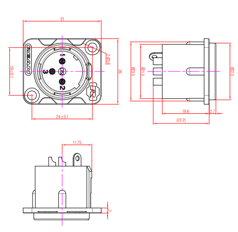 GNIAZDO XLR MĘSKIE TABLICOWE RC3MDL REAN NEUTRIK TABLICOWE MONTAŻOWE