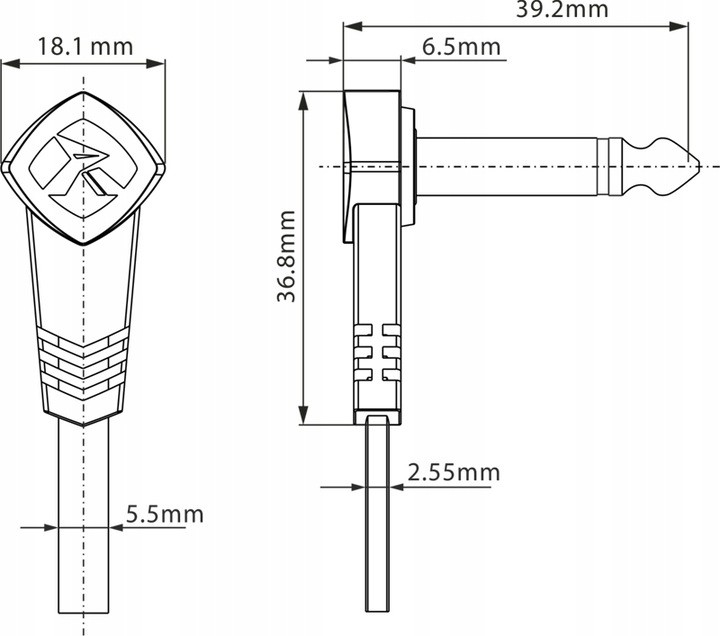 - Kątowa wtyczka jack pozwala zmniejszyć ilość miejsca miedzy urządzeniami typu efekty nożne.
