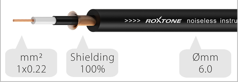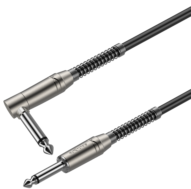 Prefabrykowany kabel instrumentalny o wysokiej wydajności ze złączami ROXTONE: 1 x jack mono RJ2PP-NN i 1 x jack mono kątowy RJ2RPP-NN