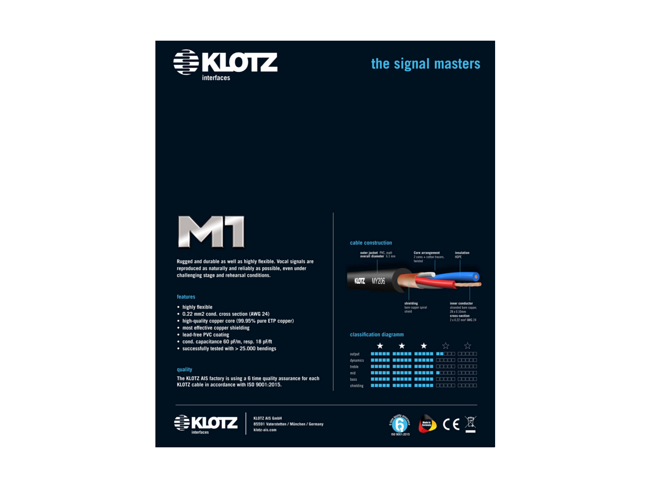 Profesjonalny kabel audio M1MS1B0300. Wyposażony w wysokiej jakości konektory Neutrik, zapewniające klarowny dźwięk i trwałość. Idealny do zastosowań studyjnych i koncertowych. Dzięki markowej produkcji KLOTZ gwarantuje niezawodność i profesjonalne parametry.