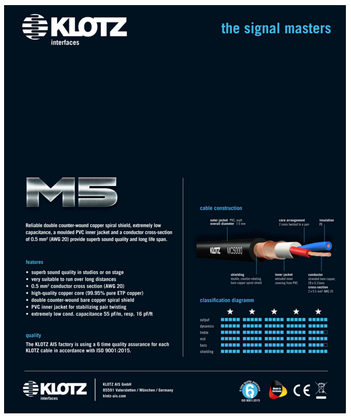 Zaprojektowany przez renomowaną markę KLOTZ oraz wyposażony w wtyki NEUTRIK, gwarantuje niezawodne połączenie i transparentną transmisję sygnałów, zapewniając jednocześnie optymalną jakość dźwięku. Wykonany z solidnych materiałów, jest odporny na uszkodzenia mechaniczne oraz działanie czynników zewnętrznych, co gwarantuje długotrwałe użytkowanie.