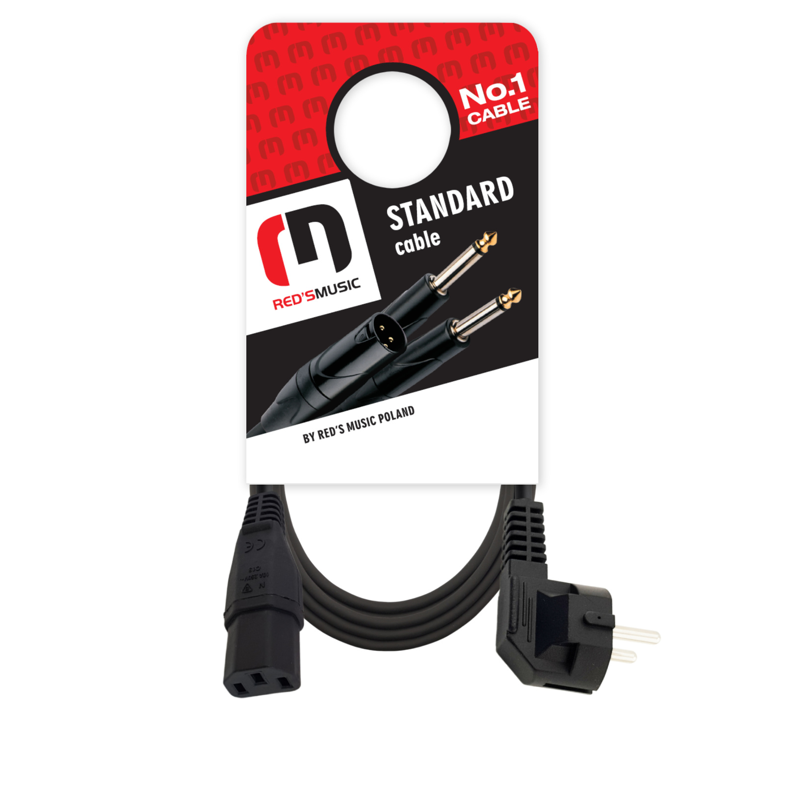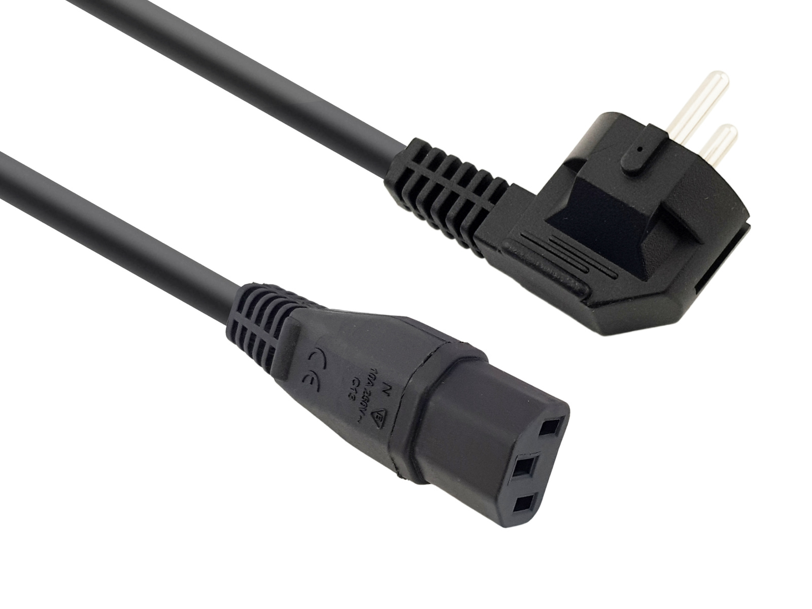 KABEL ZASILAJĄCY 1.5m IEC C13 WTYK SCHUKO KĄTOWY 3X1,5MM2 GUMA CZARNY