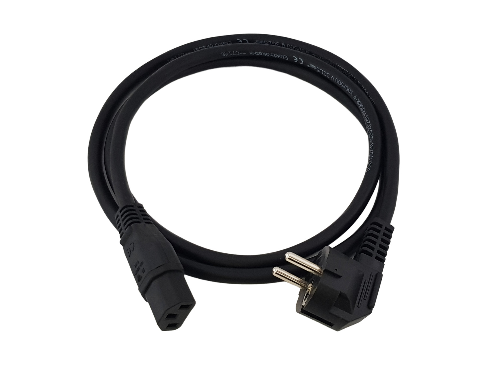 KABEL ZASILAJĄCY 5m IEC C13 WTYK SCHUKO KĄTOWY 3X1,5MM2 GUMA CZARNY