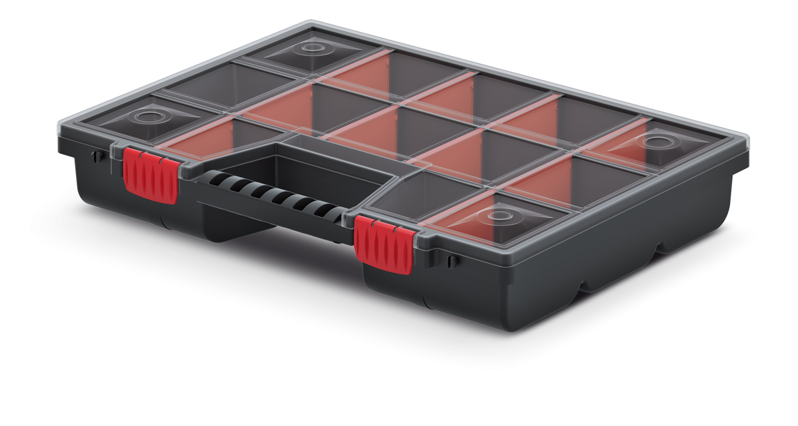 Organizator narzędziowy NOR 40 to idealne rozwiązanie dla każdego majsterkowicza i profesjonalisty. Zapewnia wygodę pracy oraz doskonałe uporządkowanie dla twoich narzędzi. Wyposażony w ergonomiczny uchwyt, ten organizer zapewnia łatwe przenoszenie i transport Twoich narzędzi. Pokrywa z polipropylenu Random pozwala na łatwe zobaczenie tego, co znajduje się w środku, a solidne zapięcia gwarantują bezpieczne zamknięcie, aby nic nie wypadło podczas transportu. Organizer NOR 40 ma 10 wyjmowanych przegród, dzięki czemu możesz dowolnie dostosować układ i organizację przestrzeni wewnątrz. Wytrzymały korpus wykonany z mieszanki polimerów zapewnia niezawodną trwałość i odporność na uszkodzenia.