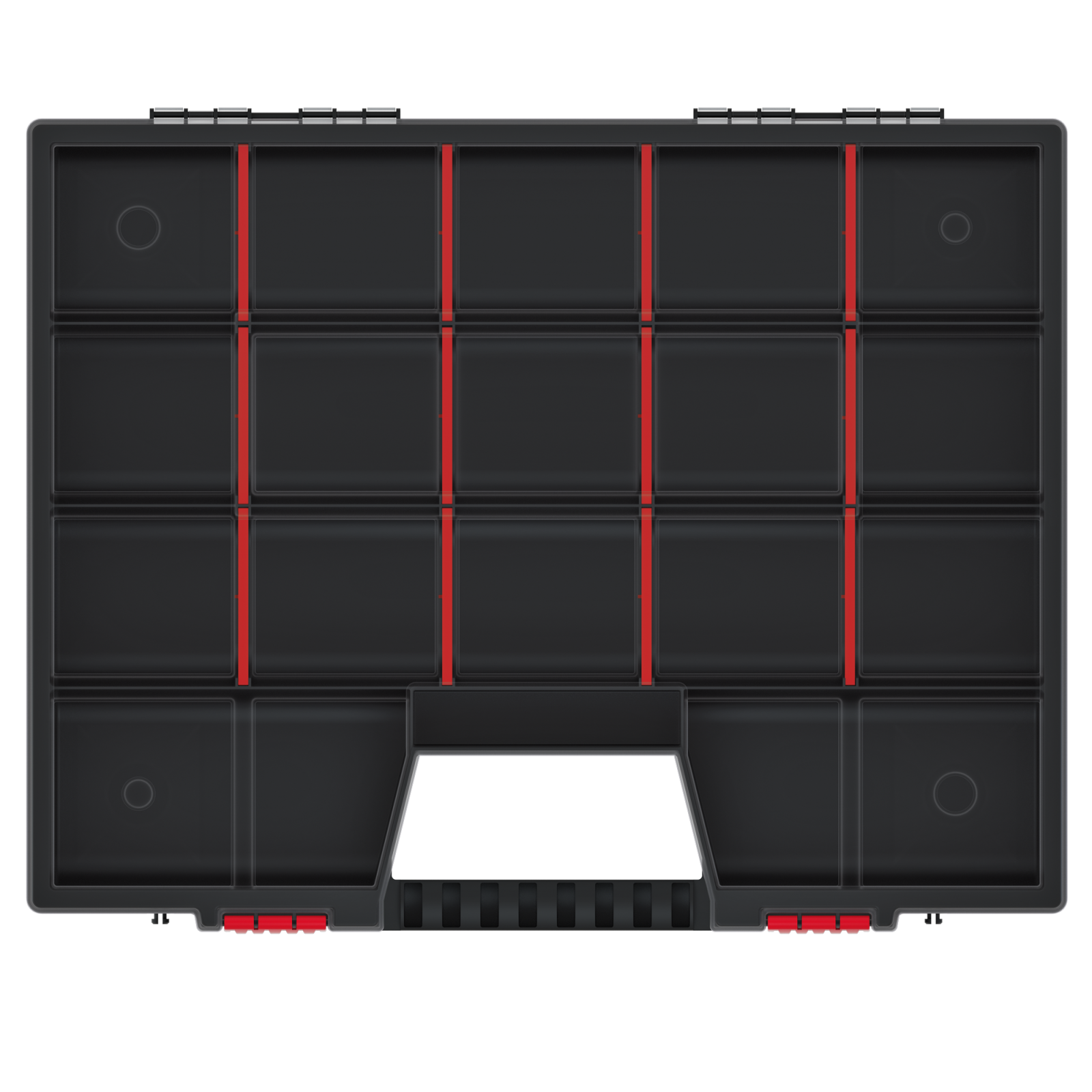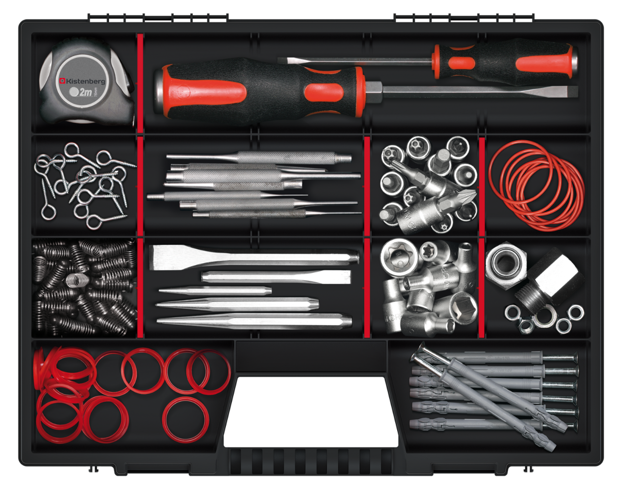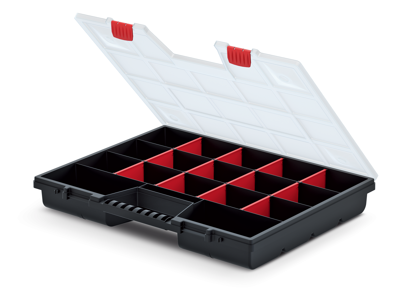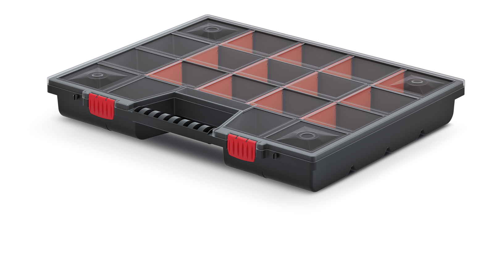 ORGANIZER NOR 50 to wytrzymały i praktyczny narzędziowy organizer, który ułatwi Ci przechowywanie i porządkowanie narzędzi. Dzięki ergonomicznie zaprojektowanemu uchwytowi, możesz łatwo przenosić go w miejscu pracy lub w mieszkaniu. Ta funkcjonalna skrzynia narzędziowa jest wyposażona w przejrzystą pokrywę z PP Random, dzięki której łatwo zobaczysz swój zasób narzędzi bez konieczności otwierania pojemnika. Wytrzymałe zapięcia zapewniają bezpieczne przechowywanie i transport organizera. Wnętrze organizera NOR 50 jest podzielone na 12 wyjmowanych przegród, co umożliwia dostosowanie rozmiaru komórki do różnych narzędzi lub akcesoriów. Dzięki temu utrzymasz porządek i będziesz mieć wszystko w zasięgu ręki. Korpus organizera wykonany jest z wytrzymałej mieszanki polimerów, co gwarantuje jego trwałość i odporność. Bez wątpienia ORGANIZER NOR 50 to niezastąpiony element Twojego zestawu narzędziowego.