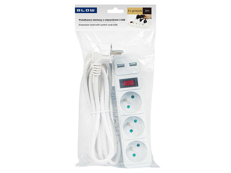 Przedłużacz sieciowy BLOW PR-370WSP/USB to doskonałe rozwiązanie do użytku domowego, łączące funkcjonalność, wygodę i bezpieczeństwo. Dzięki swojej konstrukcji pozwala na podłączenie urządzeń oddalonych od gniazdka oraz umożliwia szybkie ładowanie sprzętów mobilnych poprzez dwa porty USB.
