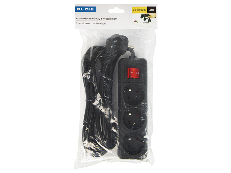 Przedłużacz sieciowy BLOW PR-370WSP w eleganckim czarnym kolorze to praktyczne rozwiązanie dla domu lub biura, zapewniające wygodne podłączenie urządzeń z dala od gniazdka elektrycznego. Wyposażony w trzy obrócone pod kątem gniazda oraz wygodny przełącznik, umożliwia łatwe sterowanie zasilaniem jednym kliknięciem. Solidna konstrukcja oraz najwyższej jakości materiały gwarantują długotrwałe użytkowanie i bezpieczeństwo.