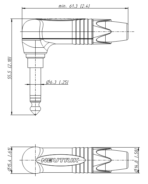 WTYK JACK 6.3 MONO TS NP2RX KĄTOWY SILENT NEUTRIK BEZTRZASKOWE POŁĄCZENIE